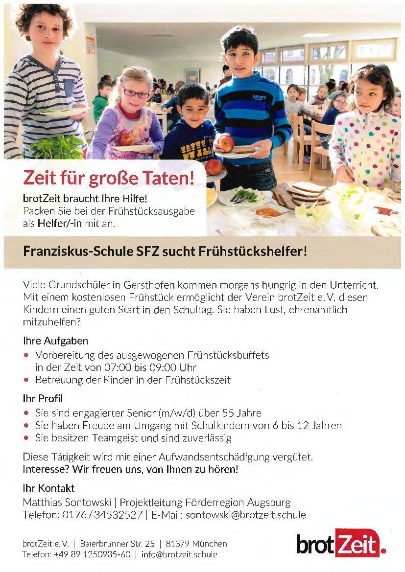 Seit dem 1. April gibt es an der Franziskus Schule das Ankommfrühstück für alle Schülerinnen und Schüler starten. Dafür konnten wir die von Uschi Glas gegründete Stiftung BrotZeit e.V. für uns zu gewinnen.
